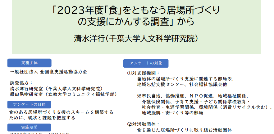 「2023年度「食」をともなう居場所づくりの支援にかんする調査」(PDF)