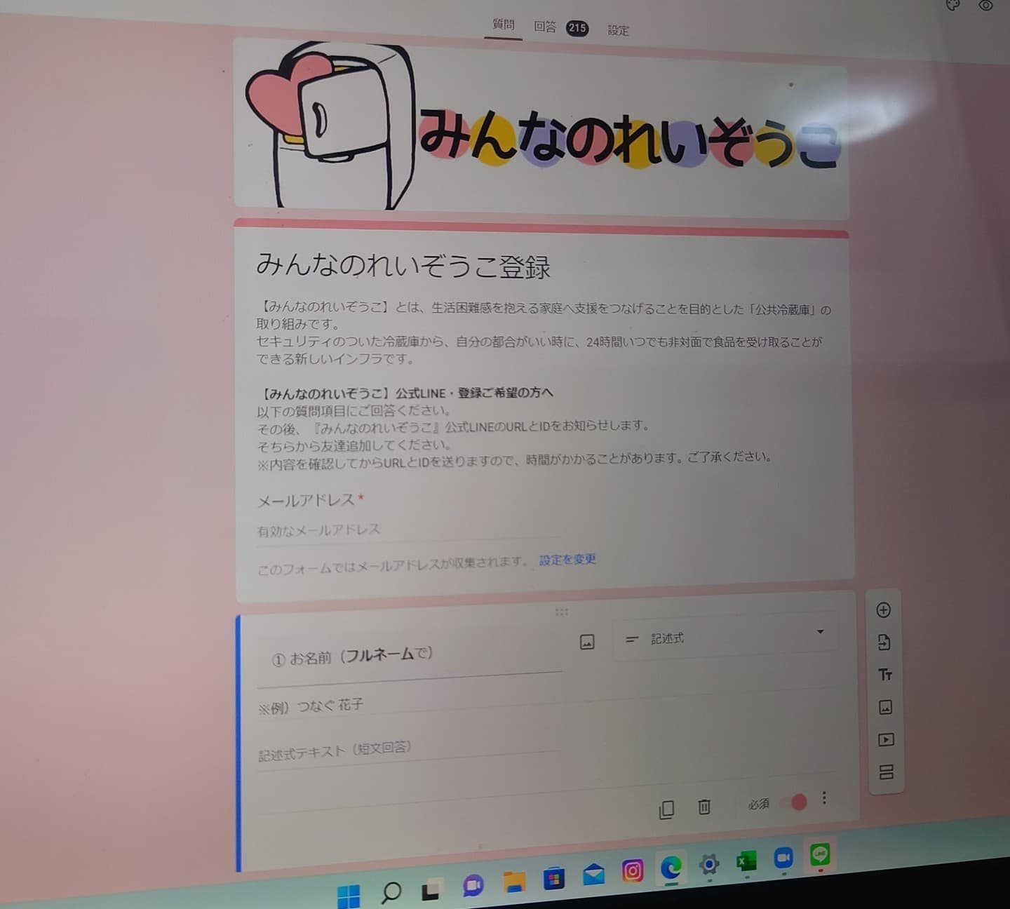 今は LINEグループで「みんなのれいぞうこ」に希望される方だけ移動してもらっています。現在のLINE登録者数は200名ほど。新規の人はこれから取り込んでいきたいと安藤さんは言います。