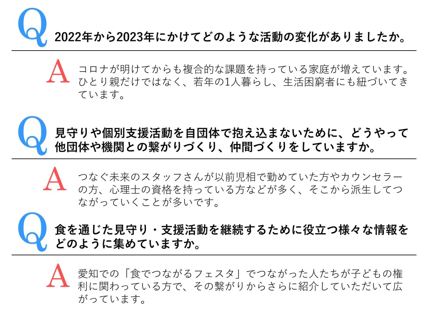 「今後きちんと一定の分析をし、支援をしたあとの成果を可視化することで、フードロスや食品難などの社会問題解決に貢献していることを示していきたいです。」(安藤さん)