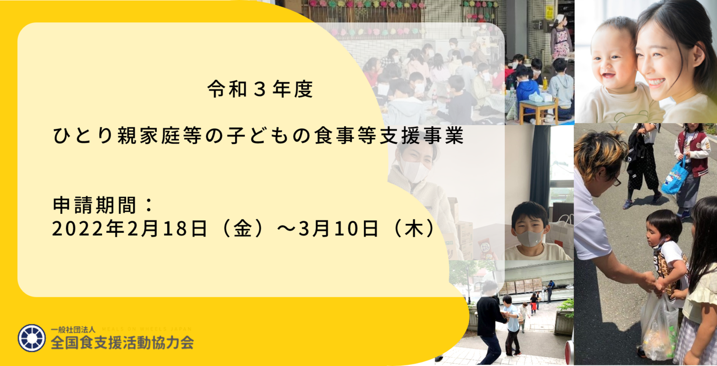 当会では全国に普及するこども食堂等居場所を支援するために、こども食堂サポートセンターを2019年4月から立ち上げ、運営団体の相談・情報提供窓口を担っている他、企業からの寄付を用いた冠助成事業を実施しています。これらの活動の中で、コロナ禍以降ひとり親家庭を始めとした困窮の拡大と、それに伴う食堂等運営団体における食支援ニーズの高まりを実感しています。本事業では、主に子育て世帯を中心とする生活困窮者に対して食を通じた支援を行う団体の取組への助成を通じて、子どもの貧困や孤独・孤立への緊急的な支援を行うことを目的とします。