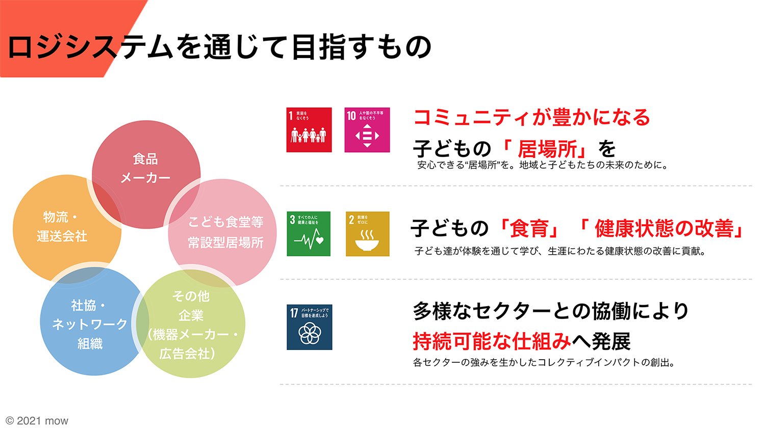 主な事業内容 | ●居場所づくりの推進(こども食堂サポートセンタープロジェクト/ミールズ・オン・ホイールズ ロジシステム) |