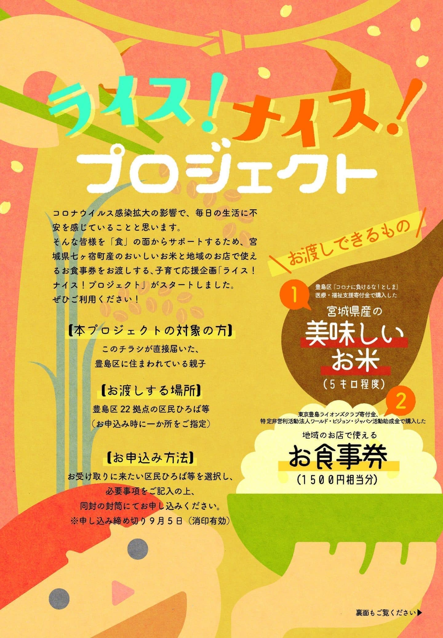 だけでは支えきれない子どもたちの食糧支援を行ってきました。現在は現在は月に1回、お米や食料品、マスク等を豊島区内の13か所の会場でお配りしています。
