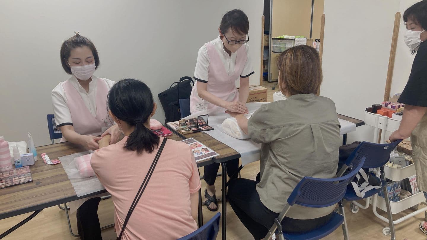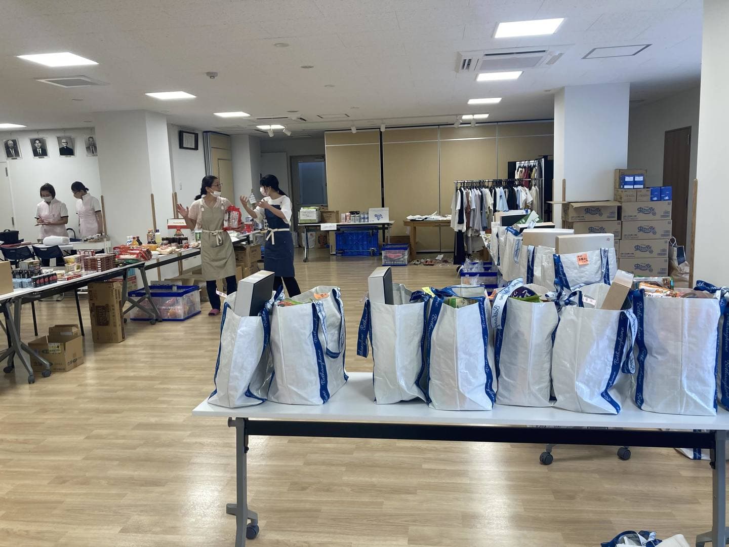 今ではフードパントリーを開催すると同時にソシオエステティシャンの方へ来ていただいたり、企業からいただいた洋服もフードパントリー開催時に提供、さらに簡易託児所もパントリー内に設置してあり、お母さんたちの憩いの場になっています。